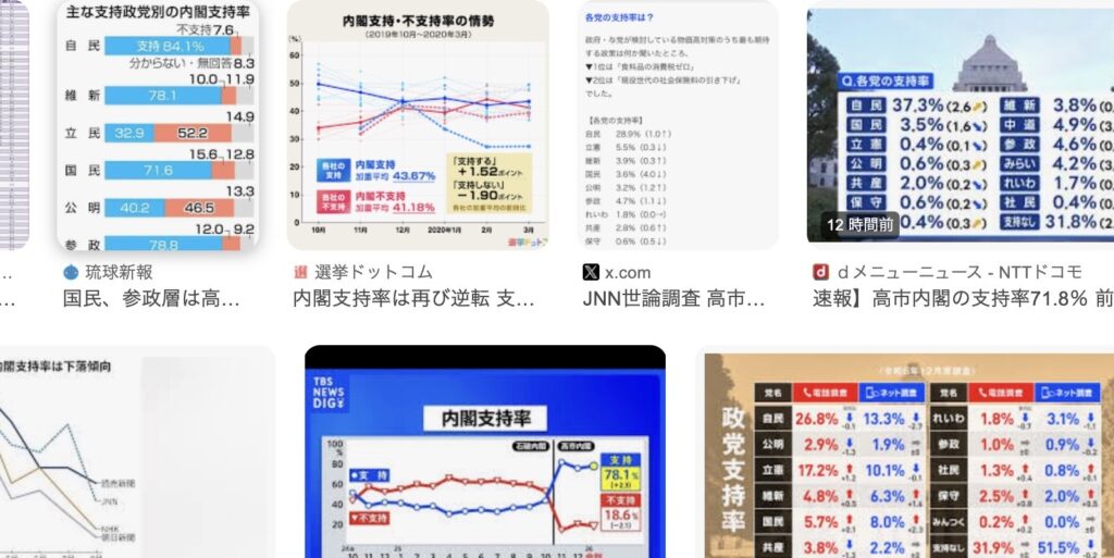 高市の支持率も自民党の支持率も